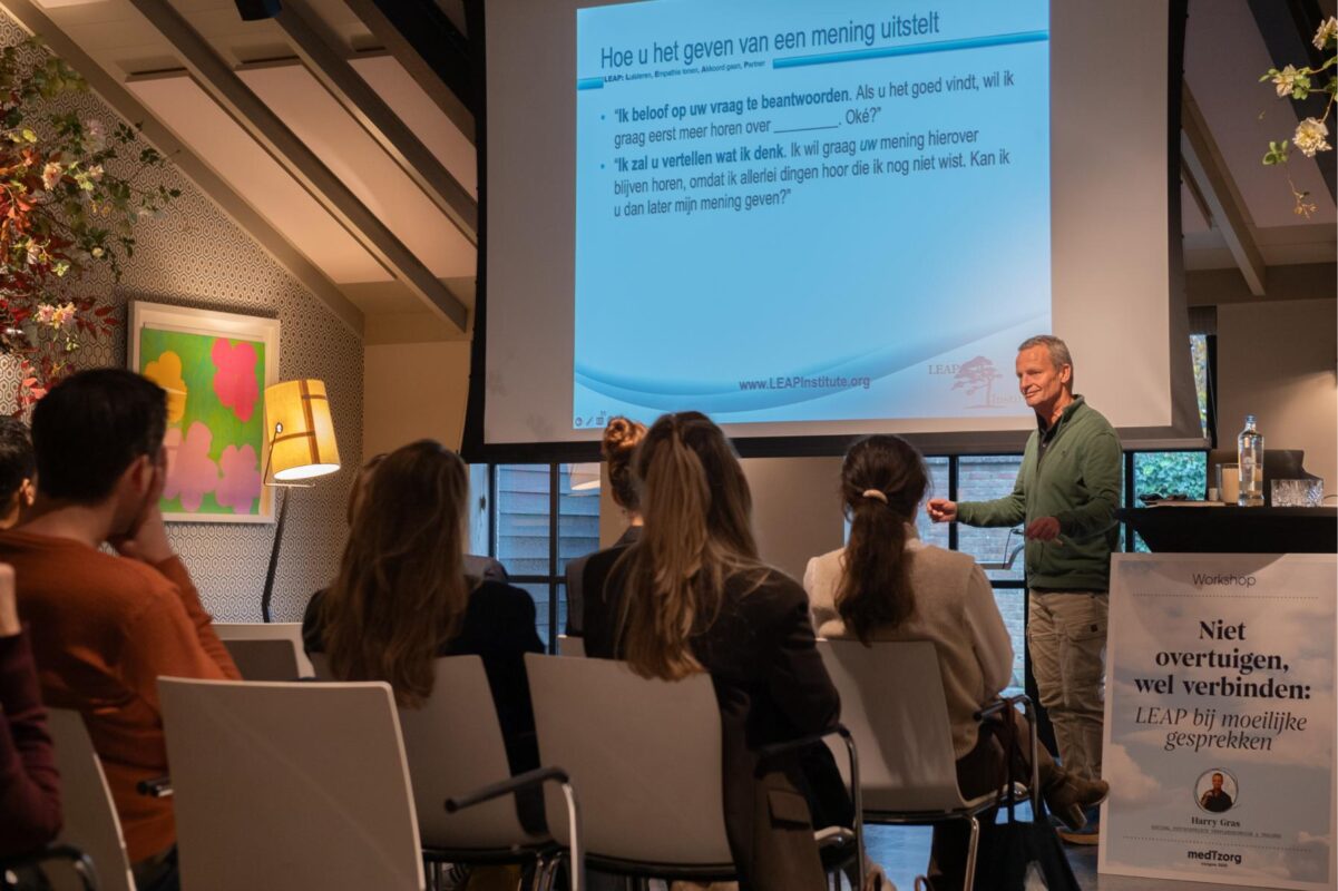 Deze workshop van Harry Gras gaat over contact maken waar communicatie lijkt vast te lopen. Over omgaan met mensen met complexe behoeften, ongrijpbare overtuigingen en soms ronduit onredelijk gedrag. Je leert geen trucje, maar een praktische methode: LEAP (Listen, Empathize, Agree, Partner). Deze methode leert je hoe je eerst verbinding maakt en dan pas richting geeft. Hoe je empathie toont zonder je professionele grenzen te verliezen. En hoe je kunt samenwerken met iemand die jouw werkelijkheid niet deelt. Deze workshop is voor professionals die willen stoppen met trekken aan dichte deuren, en liever leren hoe ze die openen.